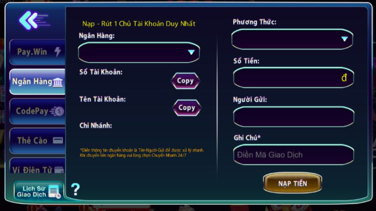 Các bước để nạp tiền vào cổng game 789club