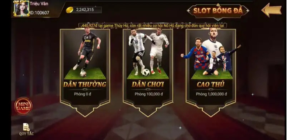 Game Slot Bóng Đá là một trò chơi đổi thưởng thú vị, kết hợp giữa thể thao và sự may mắn của các Slot machine. Trong trò chơi này, anh em sẽ thấy các biểu tượng liên quan đến bóng đá xuất hiện trên các dòng cuộn, và mục tiêu là ghép chúng thành các cấu hình thắng hấp dẫn.